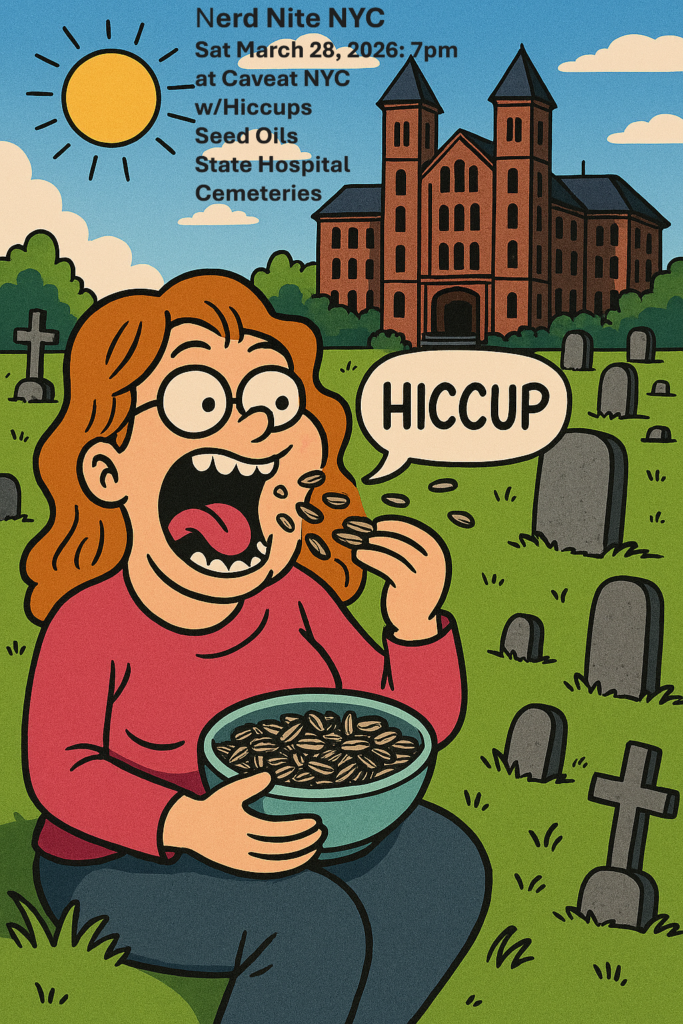 Can hiccups really be cured? How can some fats be good and some bad? What other ways can we use forgotten state hospital cemeteries – perhaps for poetry readings? Find out all of this and more at Nerd Nite on Saturday March 28, 2026 at Caveat NYC in the Lower East Side. Hiccup! Tickets here.